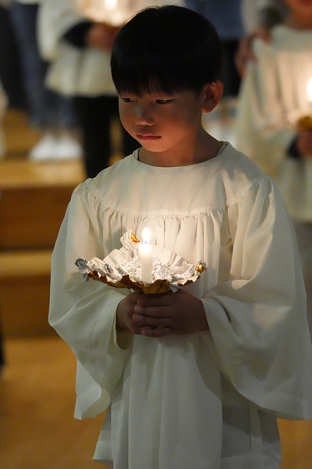 はと組の子ども達がキャンドルサービスを行いぶどうの部屋を明るくし照らしてくれます。