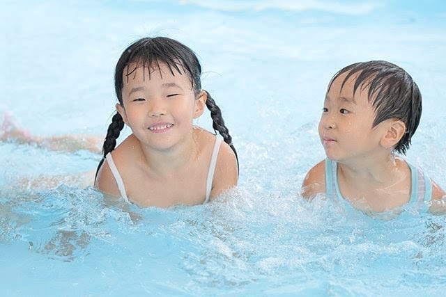 かなりや組(2歳児)以上は屋上にて水遊びをします。