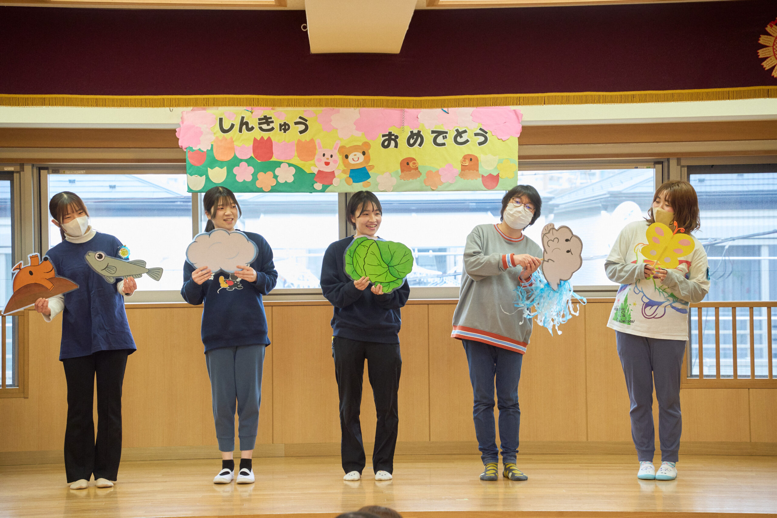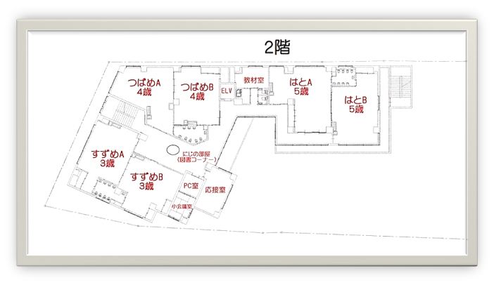 誕生会や生活発表会など様々な催しや、雨天時の遊び場、またお昼寝にも使用されている大広間「ぶどうの部屋」です。