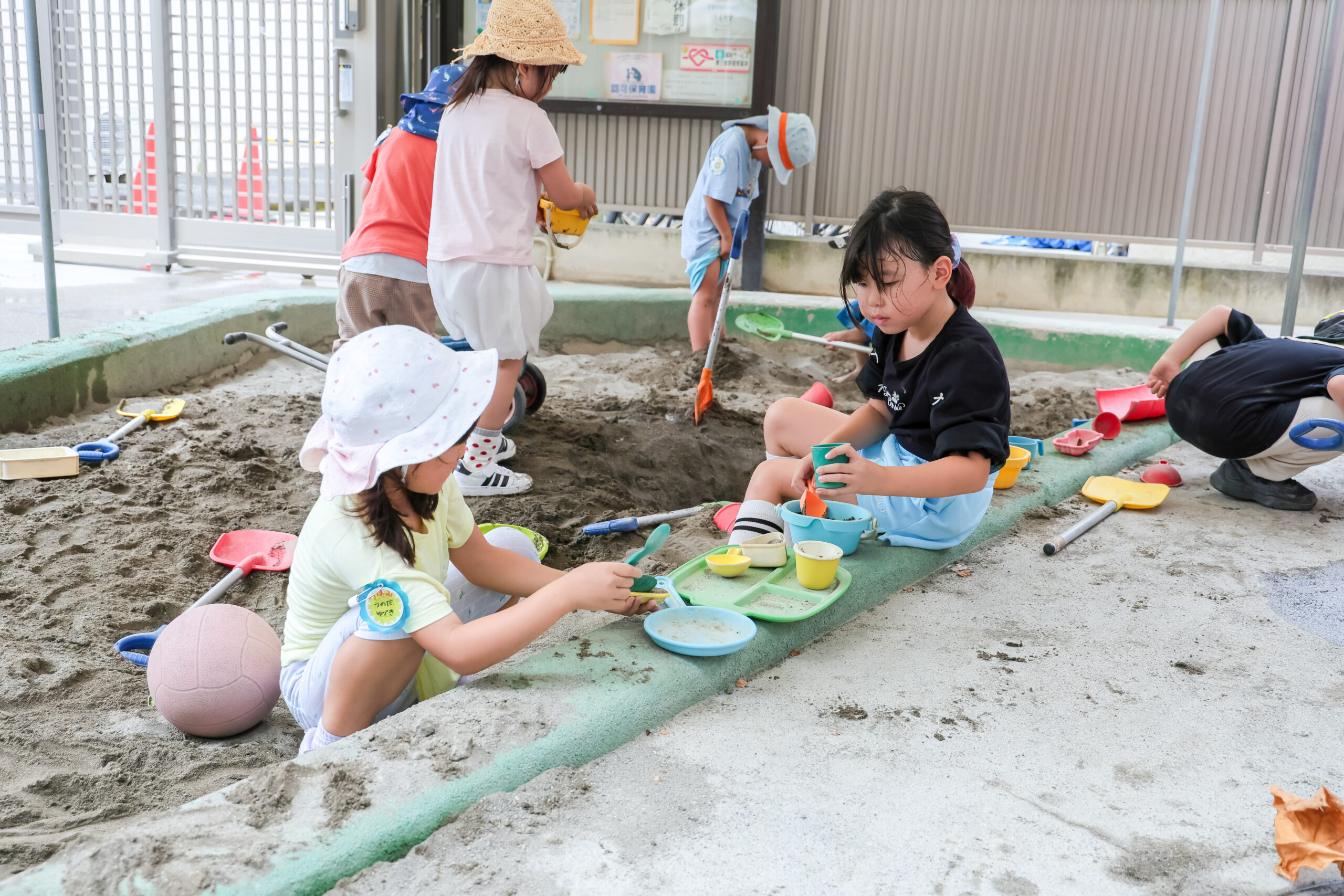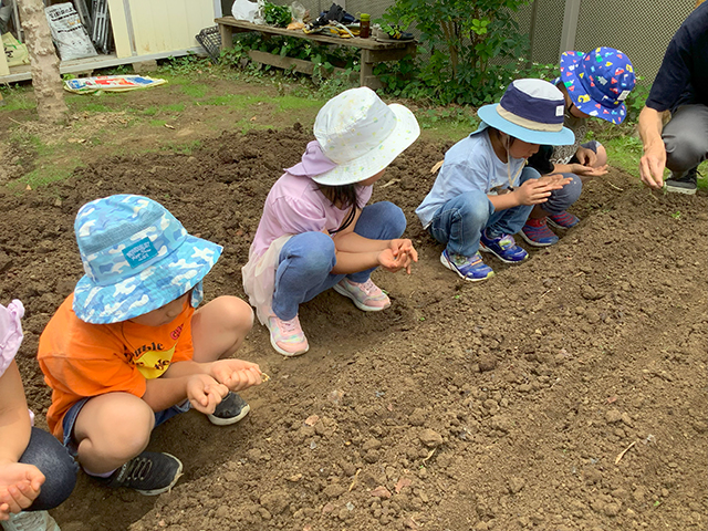 身体を動かす遊びを通して運動能力を養い、お友だちと協力して遊ぶ中で、協調性やコミュニケーション能力を育てます。また、自然の音、光、風、土の感触などによって五感が刺激され、子どもたちの感覚が豊かになります。