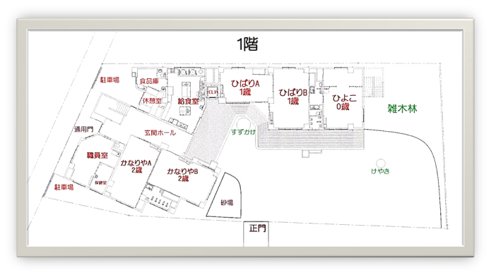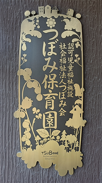 「つぼみ保育園のプレート」が皆様をお出迎えいたします。