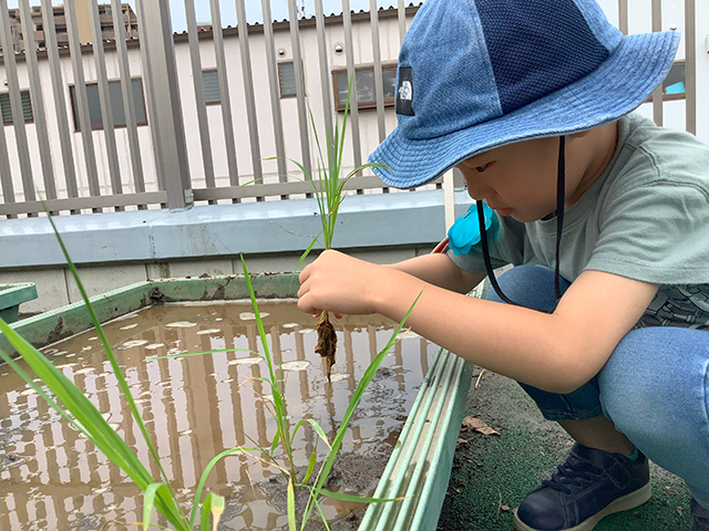 毎日食べているお米がどのように作られているのかを身近に感じ、食べ物の「大切さ」「尊さ」を学びます。