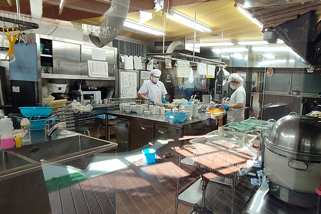 ガラス張りの調理室は、外から調理の様子を見ることができます。